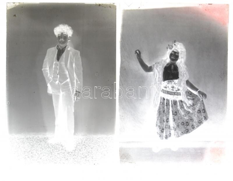 Beschreibung: cca 1950 Roma családok, lányok, csávók Hajdú János (?-?) csongrádi fényképész műtermében, 13 db vintage síkfilm negatív, 10x15 cm