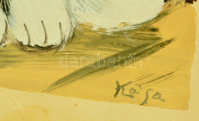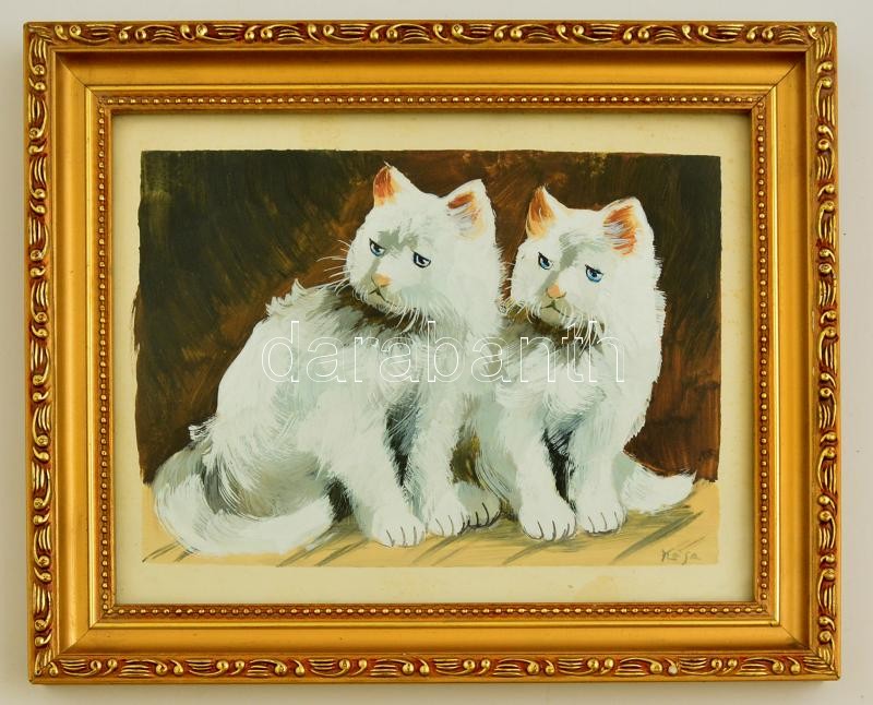 Kása jelzéssel: Fehér cicák. Gouache, papír, üvegezett keretben, 15×21... https://www.darabanth.com/de/308-Fernauktion/308.0/Andere-Sammelgebiete/Gemalde-und-Grafiken~600012/Kasa-jelzessel-Feher-cicak-Gouache-papir-uvegezett-keretben-15C39721-cm~II1673751