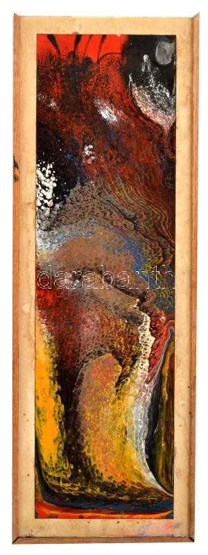 Beschreibung: Kokas jelzéssel: Kompozíció. Akril, karton, keretben, festék lepattanással, 69×20 cm