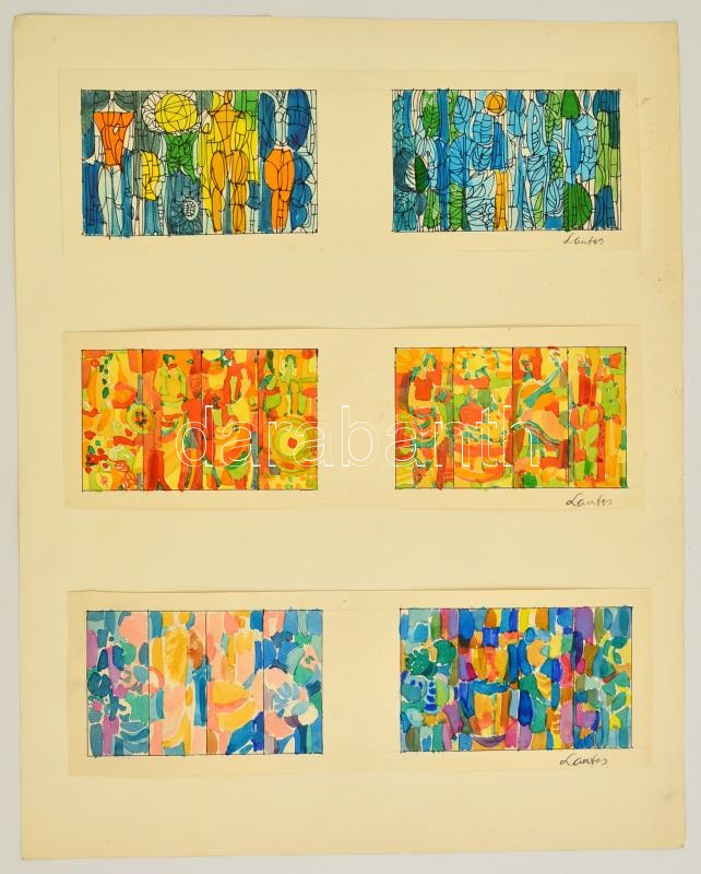 Lantos jelzéssel: Üvegablak tervek (6 db). Akvarell, papír, 8×13 cm (6... https://www.darabanth.com/de/308-Fernauktion/308.0/Andere-Sammelgebiete/Gemalde-und-Grafiken~600012/Lantos-jelzessel-Uvegablak-tervek-6-db-Akvarell-papir-8C39713-cm-6C397~II1669324
