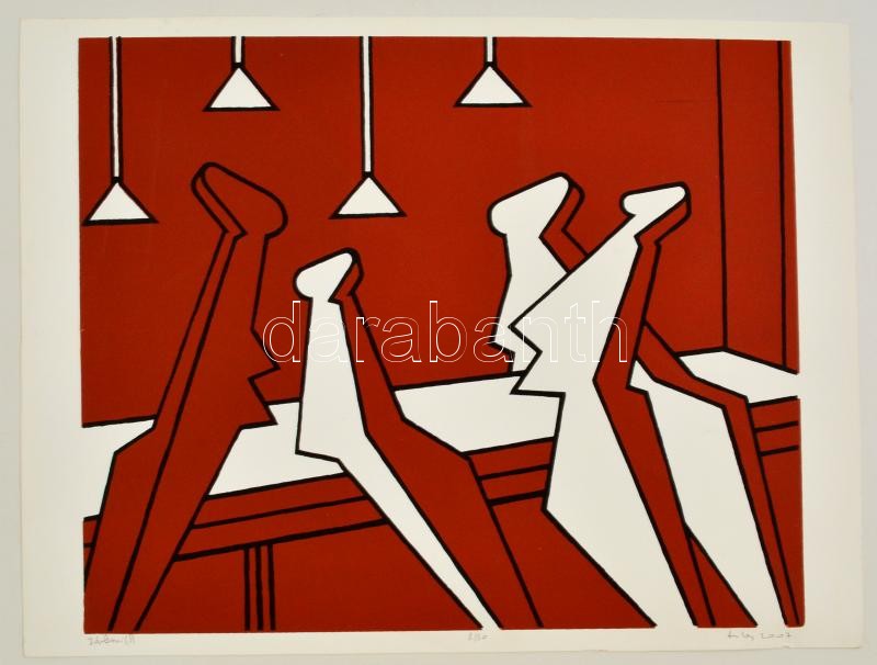 Beschreibung: Lukács Tibor (1960-): Bárban. Szitanyomat, papír, jelzett, 28×34 cm
