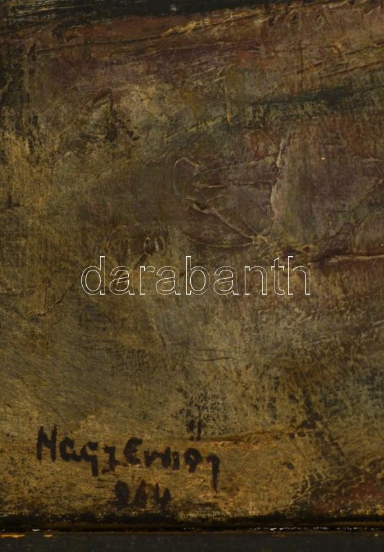 Beschreibung: Nagy Ernő (1926-):Utca részlet. Olaj, vászon, jelzett, foltos, keretben, 50×65 cm