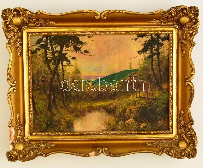Olvashatatlan jelzéssel: Szarvasbőgés. Olaj, vászon, keretben, 25×35 c... https://www.darabanth.com/de/308-Fernauktion/308.0/Andere-Sammelgebiete/Gemalde-und-Grafiken~600012/Olvashatatlan-jelzessel-Szarvasboges-Olaj-vaszon-keretben-25C39735-cm~II1674761