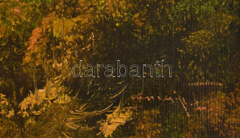 Beschreibung: Olvashatatlan jelzéssel: Szarvasbőgés. Olaj, vászon, keretben, 25×35 cm