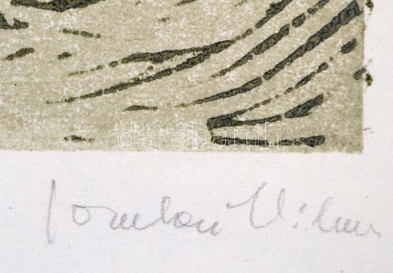 Beschreibung: Somlai Vilma (1938-2007): Mályva, színes linó, papír, jelzett, számozott (79/100), 42×27 cm