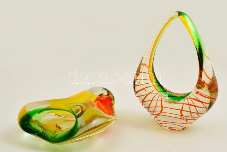 Beschreibung: Dekoratív üvegtálkák (2db), egyiken apró csorba, m:17 cm, 15×12 cm