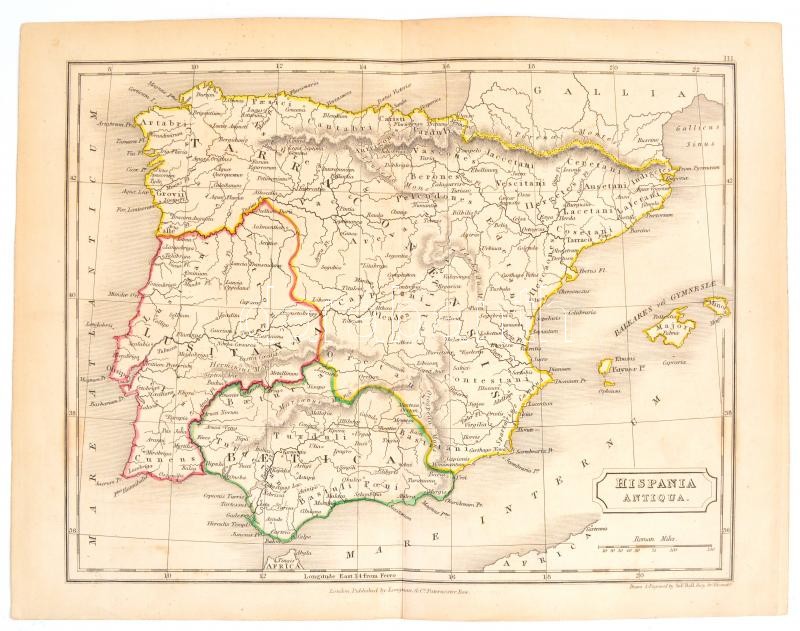 cca 1820-1840 Sidney Hall (1788-1831): Hispania Antiqua térkép, London... https://www.darabanth.com/de/308-Fernauktion/308.0/Andere-Sammelgebiete/Landkarten~26/cca-1820-1840-Sidney-Hall-1788-1831-Hispania-Antiqua-terkep-London-LongmanCo-szinezett-re~II1675650
