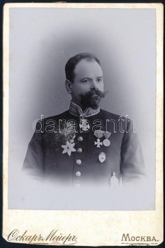 1903 Orosz katonatiszt portréja, keményhátú fotó Oskar Meyer moszkvai ... https://www.darabanth.com/de/308-Fernauktion/308.0/Andere-Sammelgebiete/Militaria~25/1903-Orosz-katonatiszt-portreja-kemenyhatu-foto-Oskar-Meyer-moszkvai-mutermebol-hatuljan~II1674782