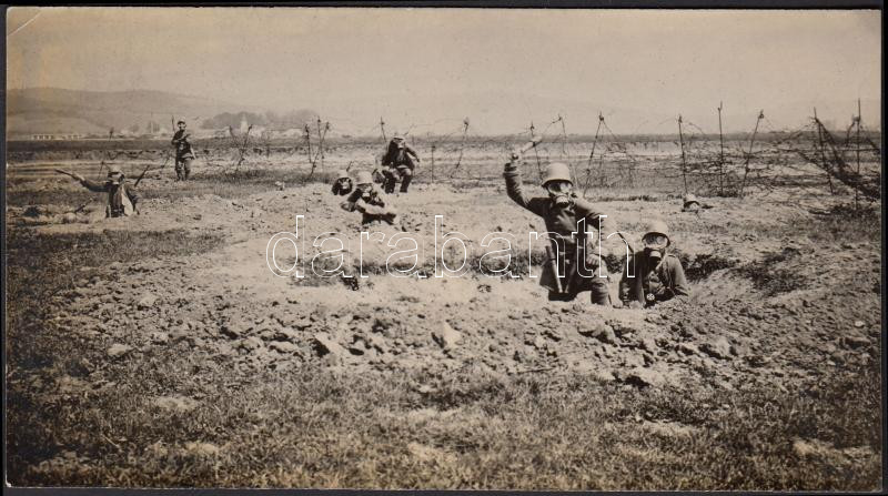 1914-1918 Harctéren katonák gázmaszkban, 9x16 cm https://www.darabanth.com/de/308-Fernauktion/308.0/Andere-Sammelgebiete/Militaria~25/1914-1918-Harcteren-katonak-gazmaszkban-9x16-cm~II764847