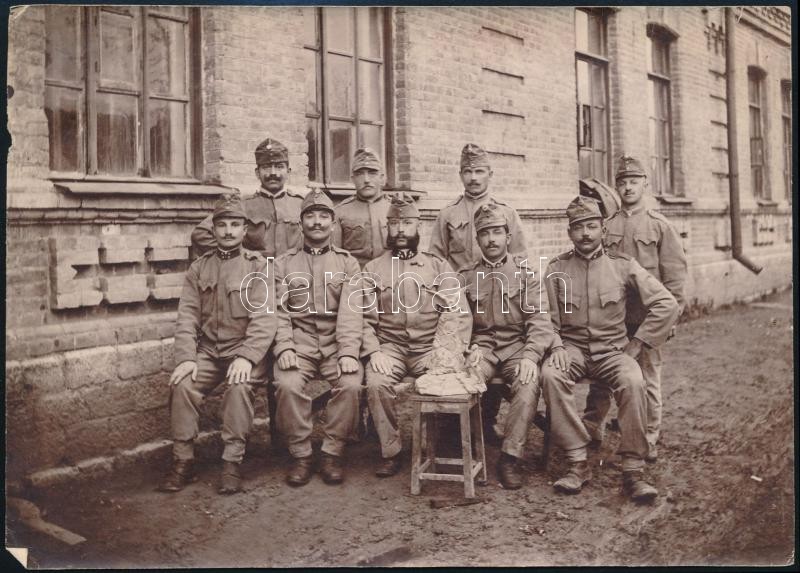 1915 Spasskoje-Pjescsanka hadifogyoltábor. Hadifogoly művészet. Háborús emlékmű terv, hátoldalon a szobor részletes leírásával. Feliratozott fotó / Spasskoe POW camp war memorial makett. 12x17 cm