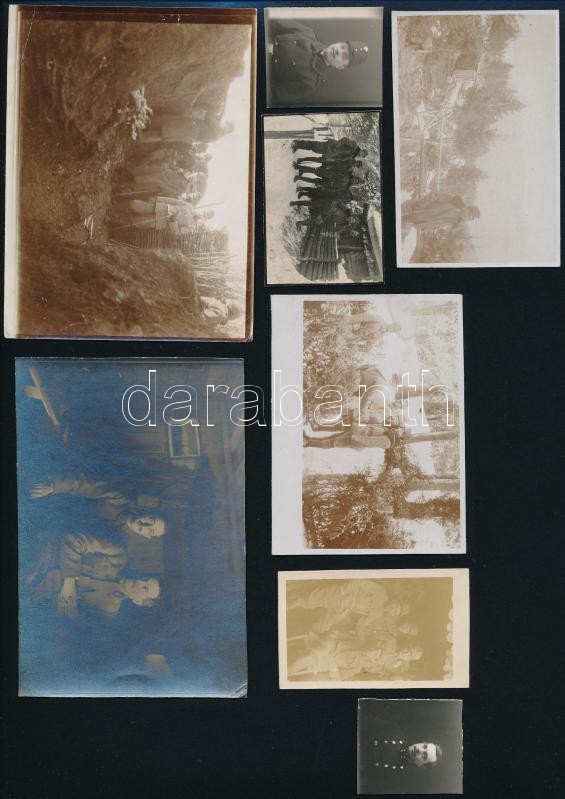 Beschreibung: 1917 11 db osztrák.magyar katonákat ábrázoló fotó, harctéri képek, lövészárok, 4x3,5 és 9x12 cm közti méretben