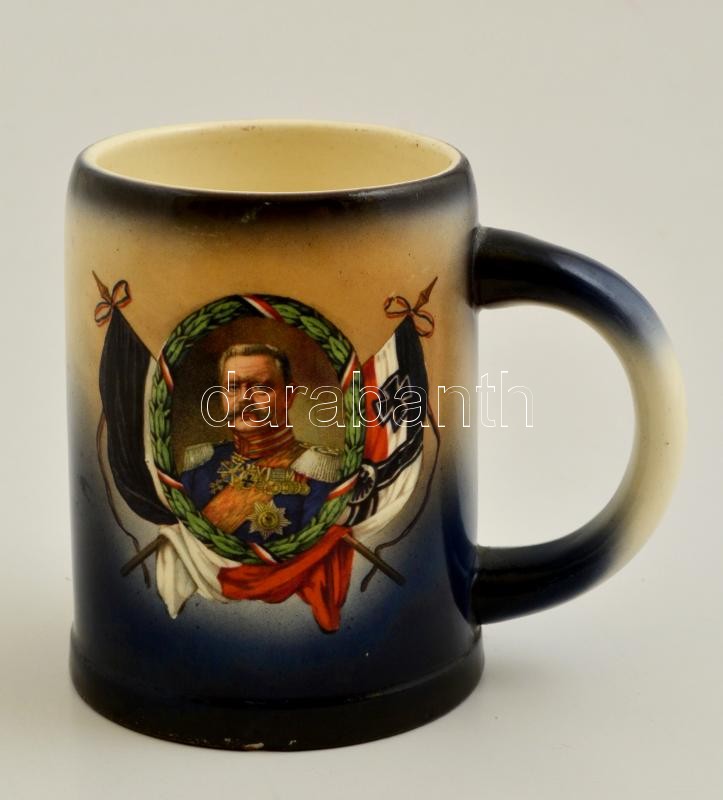 cca 1915 Hindenburgot ábrázoló kerámia söröskorsó, német háborús propaganda, néhány kisebb mázhibával / I. WW. military propaganda beer jug with Hindenburg. Ceramic. 0,5L