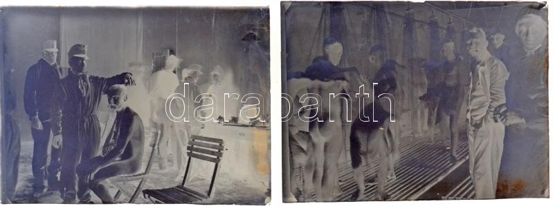 Beschreibung: cca 1917 Hadirokkantak egy rehabilitációs intézetben, 2 db vintage üveglemez negatív, 4x6 cm