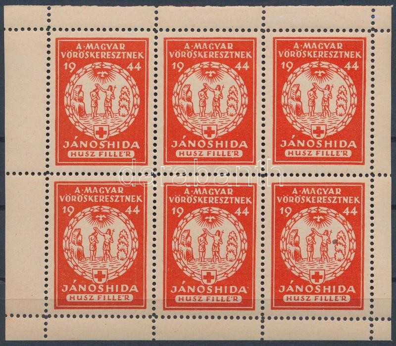 Beschreibung: 1944 Jánoshida Magyar Vöröskereszt 20f adománybélyeg 6-os kisívben