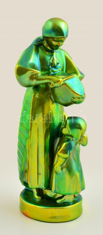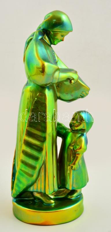 Zsolnay kenyérszelő anya, eozin mázas, jelzett (Sinkó András), m: 31 c... https://www.darabanth.com/de/308-Fernauktion/308.0/Andere-Sammelgebiete/Porzellan~8/Zsolnay-kenyerszelo-anya-eozin-mazas-jelzett-Sinko-Andras-m-31-cm~II1675439