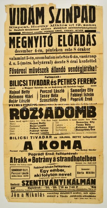 1936 Vidám Színpad megnyitó előadás műsoros plakát, fellépnek: Bilicsi... https://www.darabanth.com/de/308-Fernauktion/308.0/Andere-Sammelgebiete/Poster~28/1936-Vidam-Szinpad-megnyito-eloadas-musoros-plakat-fellepnek-Bilicsi-Tivadar-Pethes-Feren~II1644881