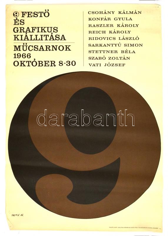 1966 Papp Gábor (1918 - 1982): 9 festő és grafikus kiállítása a Műcsar... https://www.darabanth.com/de/308-Fernauktion/308.0/Andere-Sammelgebiete/Poster~28/1966-Papp-Gabor-1918--1982-9-festo-es-grafikus-kiallitasa-a-Mucsarnokban-plakat-jelzet~II1606051