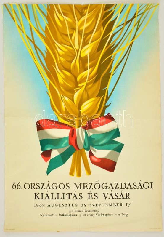 1967 66. Országos Mezőgazdasági és Élelmiszeripari Kiállítás Budapest,... https://www.darabanth.com/de/308-Fernauktion/308.0/Andere-Sammelgebiete/Poster~28/1967-66-Orszagos-Mezogazdasagi-es-Elelmiszeripari-Kiallitas-Budapest-plakat-hajtasnyomm~II1676483