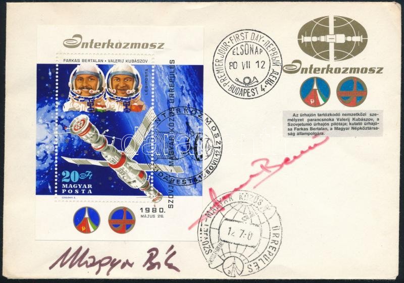 Beschreibung: 1980 Interkozmosz FDC rajta Farkas Bertalan űrhajós aláírásával