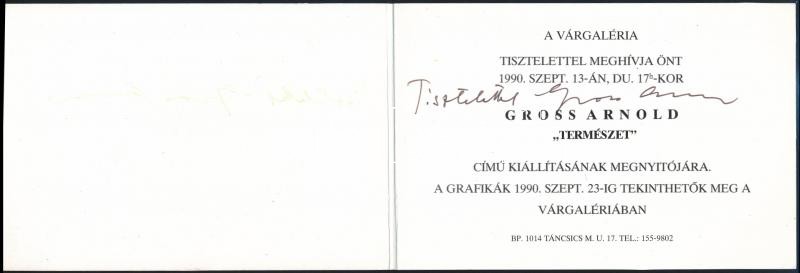 Beschreibung: 1990 Gross Arnold (1929-2015) aláírása kiálltásmeghívón