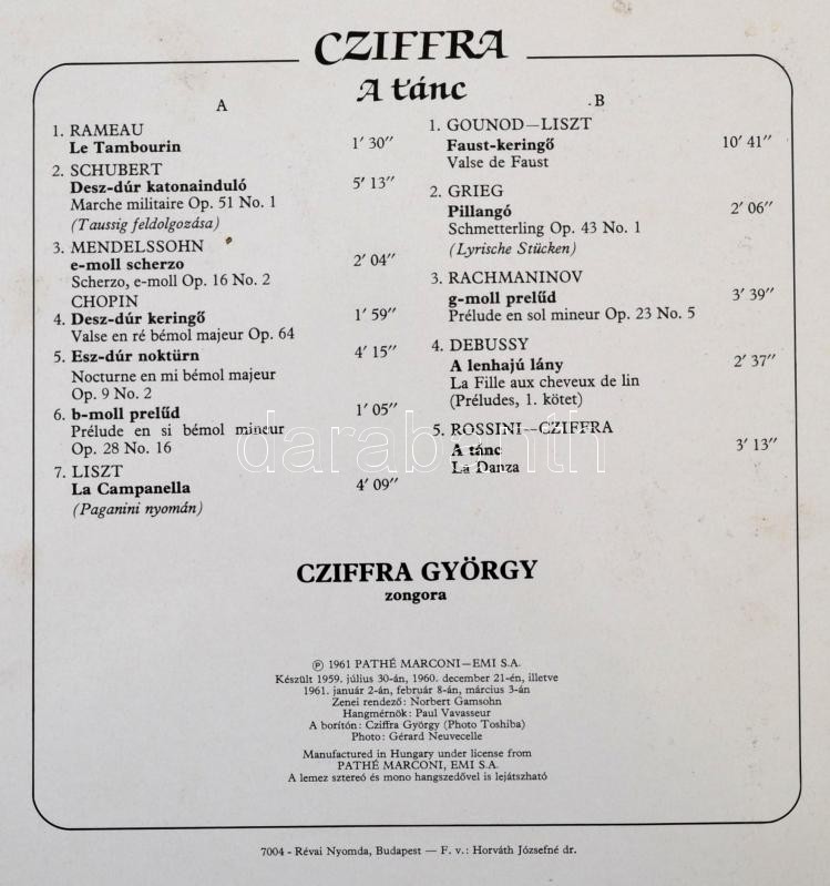 Beschreibung: Cziffra György (1921-1994) zongorista által dedikált bakelitlemez
