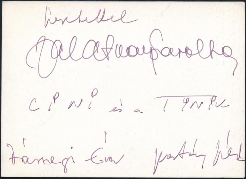 Zalatnay Sarolta, Várszegi Éva és Postásy Júliia aláírásai levelezőlap... https://www.darabanth.com/de/308-Fernauktion/308.0/Andere-Sammelgebiete/Signatur~18/Zalatnay-Sarolta-Varszegi-Eva-es-Postasy-Juliia-alairasai-levelezolapon~II1673523