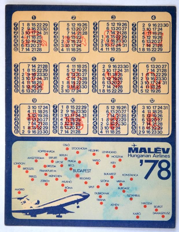 1978 Malév reklámos zsebnaptár, 15,5x12 cm https://www.darabanth.com/de/308-Fernauktion/308.0/Andere-Sammelgebiete/Werbungen~20/1978-Malev-reklamos-zsebnaptar-15-5x12-cm~II1672704