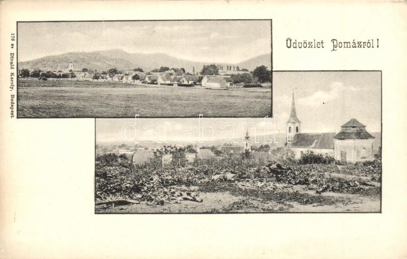 11 db régi városképes lap, Budapest és környéke (Pomáz, Máriaremete, Máriabesnyő, Budakeszi) / 11 pre-1945 town-view postcards, Budapest and surrounding towns