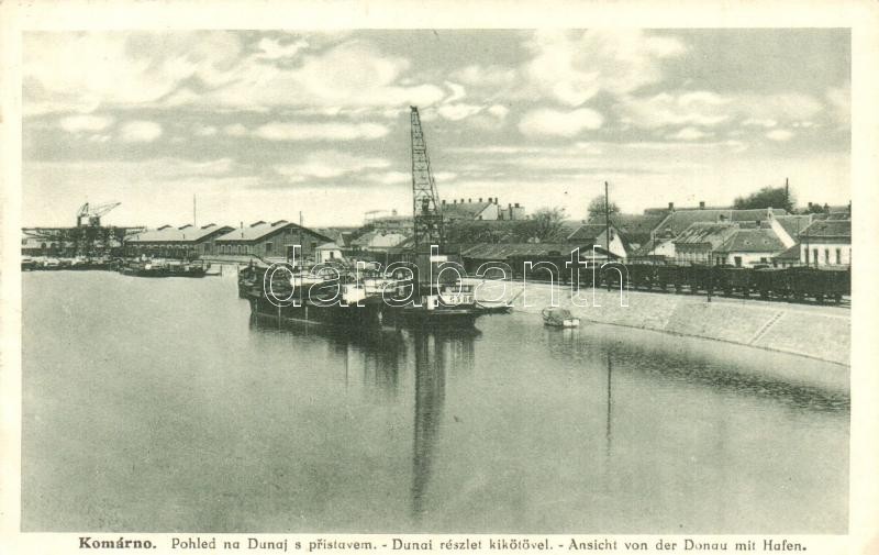 Komárom, Komárno; Pohled na Dunaj s pristavem / Dunai részlet a kikötő... https://www.darabanth.com/de/308-Fernauktion/308.0/Ansichtskarten/Slowakei~400009/Komarom-Komarno-Pohled-na-Dunaj-s-pristavem-Dunai-reszlet-a-kikotovel-uszalyok-port-ba~II1677669
