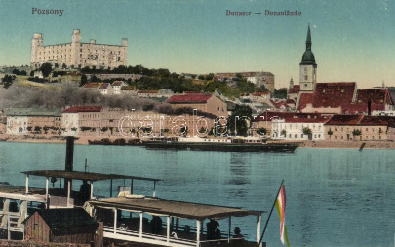 Pozsony, Pressburg, Bratislava; Dunasor, vár, gőzhajó / Danube, castle... https://www.darabanth.com/de/308-Fernauktion/308.0/Ansichtskarten/Slowakei~400009/Pozsony-Pressburg-Bratislava-Dunasor-var-gozhajo-Danube-castle-steamship~II839364