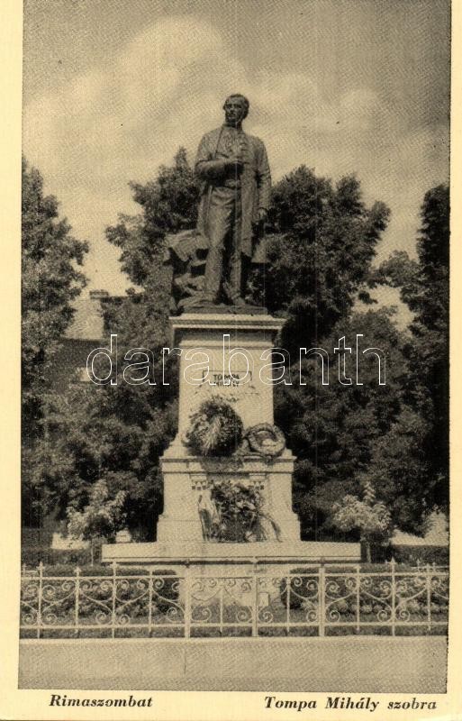 Rimaszombat, Rimavska Sobota; Tompa Mihály szobor / statue (EK) https://www.darabanth.com/de/308-Fernauktion/308.0/Ansichtskarten/Slowakei~400009/Rimaszombat-Rimavska-Sobota-Tompa-Mihaly-szobor-statue-EK~II1676867