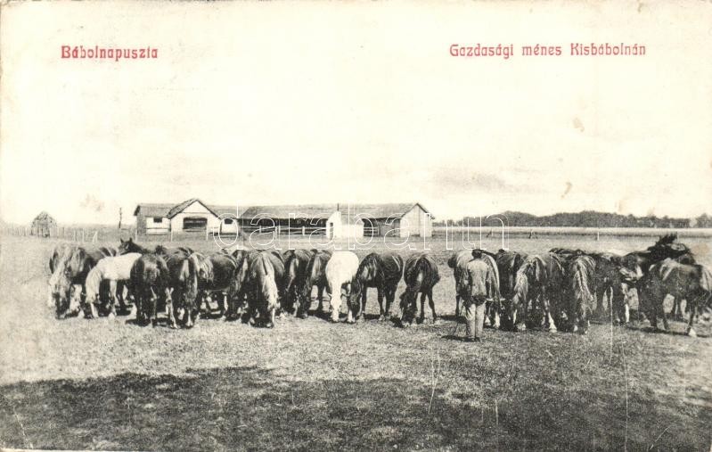 Bábolna-puszta (Bábolna), Gazdasági ménes Kisbábolnán (EK) https://www.darabanth.com/de/308-Fernauktion/308.0/Ansichtskarten/Ungarn~400007/Babolna-puszta-Babolna-Gazdasagi-menes-Kisbabolnan-EK~II1673980