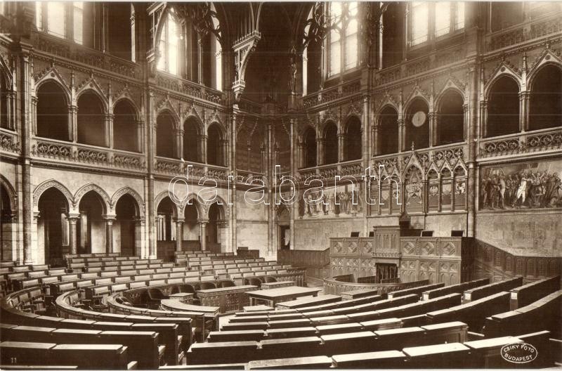 Budapest V. Országház, ülésterem, belső https://www.darabanth.com/de/308-Fernauktion/308.0/Ansichtskarten/Ungarn~400007/Budapest-V-Orszaghaz-ulesterem-belso~II1644815