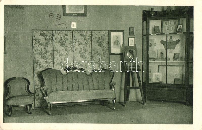 Beschreibung: Kiskőrös, Petőfi centenárium, Petőfi pesti pamlagja, karosszéke és spanyolfala, belső