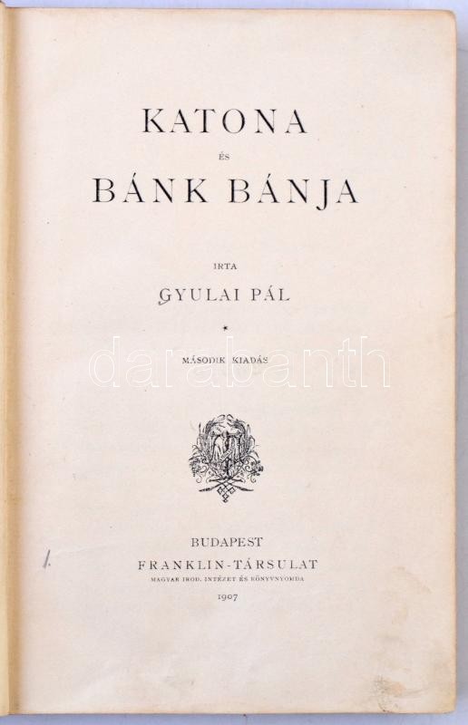 Gyulai Pál: Katona József és Bánk bánja. Bp., 1907, Franklin-Társulat, 288 p. Második kiadás. Kiadói aranyozott kopottas egészvászon-kötés, ceruzás-tollas aláhúzásokkal, intézményi bélyegzővel.