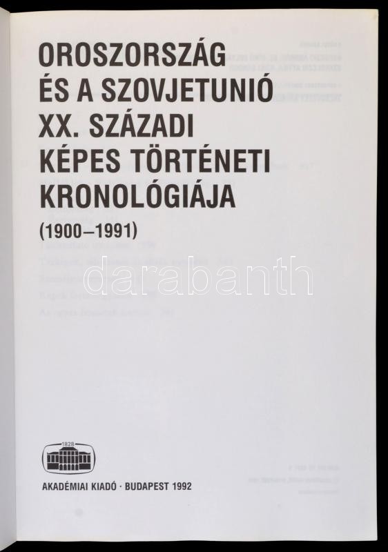 Oroszország és a szovjetunió XX. századi képes történeti kronológiája (1900-1991) Szerk.: Krausz Tamás, Szilágyi Ákos. Bp., 1992, Akadémiai Kiadó. Kiadói papírkötés. Jó állapotban.