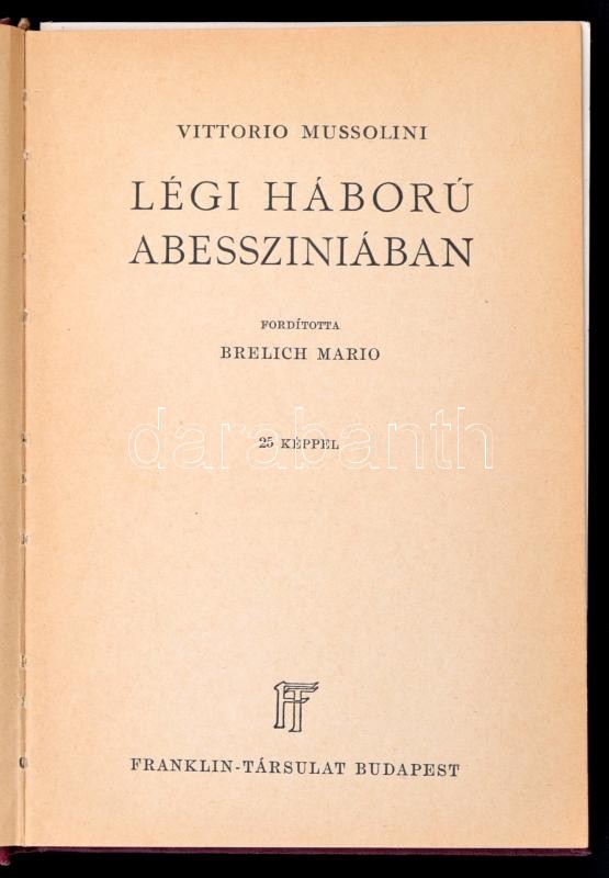 Vittorio Mussolini: Légi háború Abessziniában. Fordította: Brelich Mar... https://www.darabanth.com/de/308-Fernauktion/308.0/Bucher/Bucher-Militaria~500006/Vittorio-Mussolini-Legi-haboru-Abessziniaban-Forditotta-Brelich-Mario-Vilagjarok-Utaza~II1657492