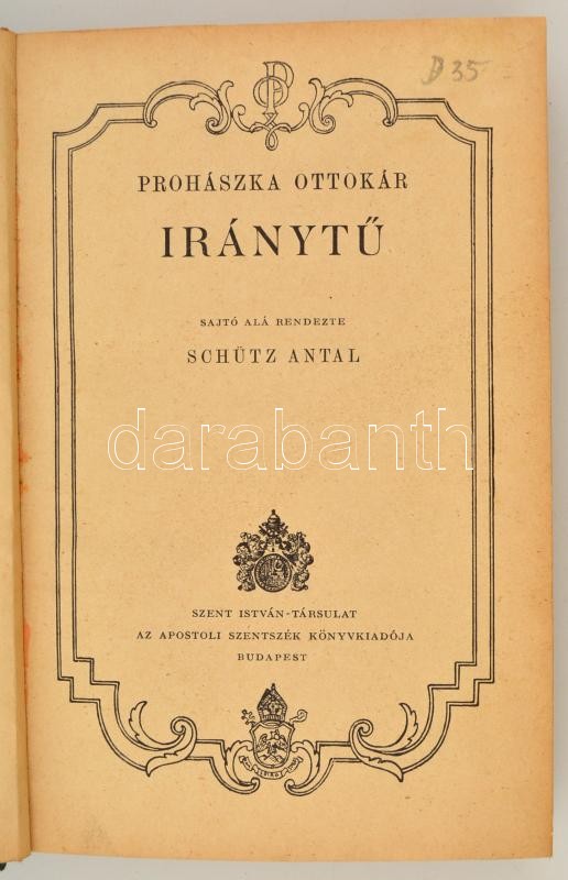 Prohászka Ottokár: Iránytű. Sajtó alá rendezte: Schütz Antal."Mag... https://www.darabanth.com/de/308-Fernauktion/308.0/Bucher/Bucher-Religion~500015/Prohaszka-Ottokar-Iranytu-Sajto-ala-rendezte-Schutz-AntalMagyar-Konyvgyujtok-1940-Bp~II1605830