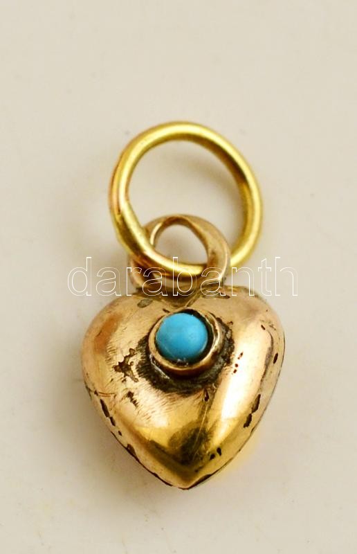 Beschreibung: Antik arany(Au) szív medál, türkiz díszítéssel, jelzett, bruttó: 0,3 g