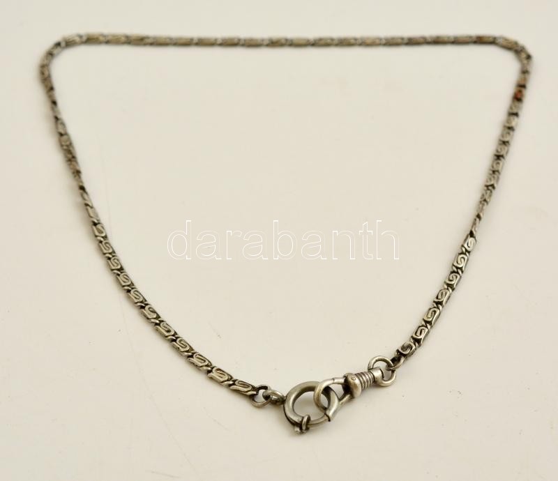 Ezüst(Ag) óralánc, fém kapcsolókarikával, jelzett, h: 34 cm, bruttó: 7... https://www.darabanth.com/de/308-Fernauktion/308.0/Juwelen/Juwelen~1/EzustAg-oralanc-fem-kapcsolokarikaval-jelzett-h-34-cm-brutto-7-2-g~II1670039