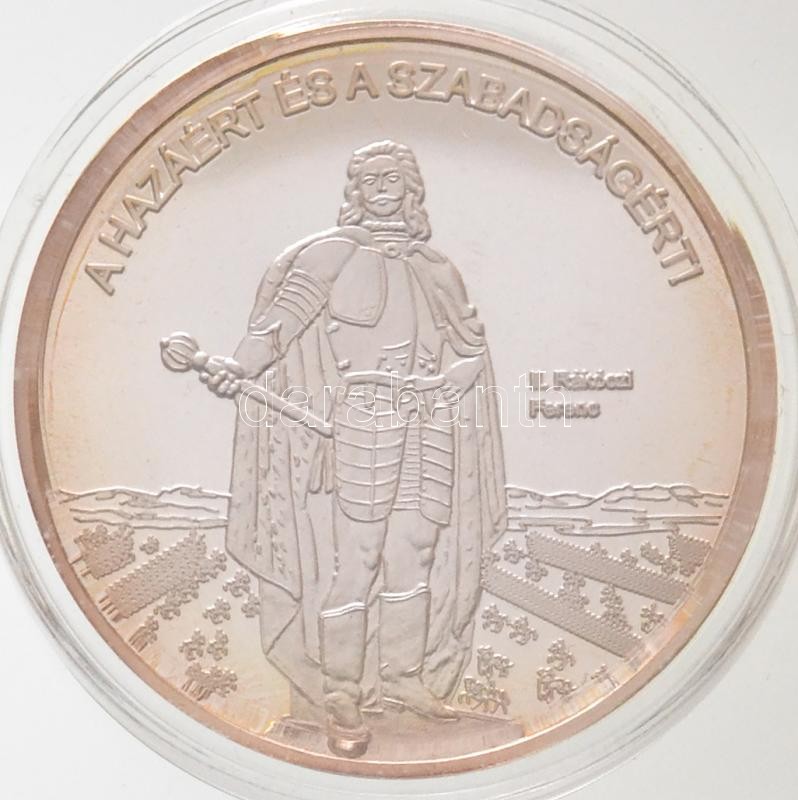 DN "Nemzetünk Nagyjai - A hazáért és a szabadságért - II. Rákóczi Ferenc / Isten áldd meg a magyart!" Ag emlékérem tanúsítvánnyal (10,37g/0.999/35mm) T:PP fo., kis patina