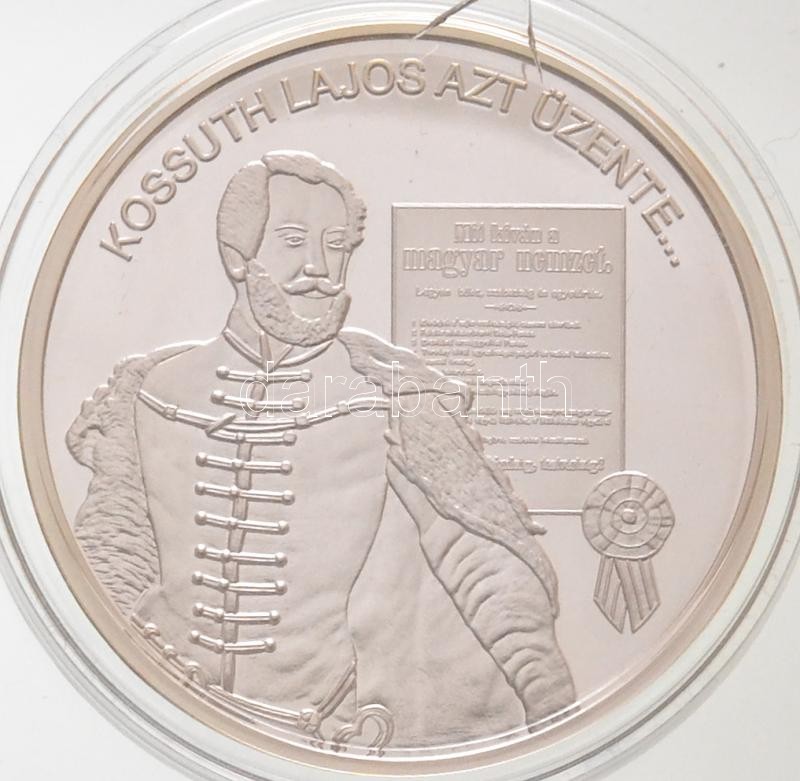 DN "Nemzetünk Nagyjai - Kossuth Lajos azt üzente... / Isten áldd meg a magyart!" Ag emlékérem tanúsítvánnyal (10,37g/0.999/35mm) T:PP fo.