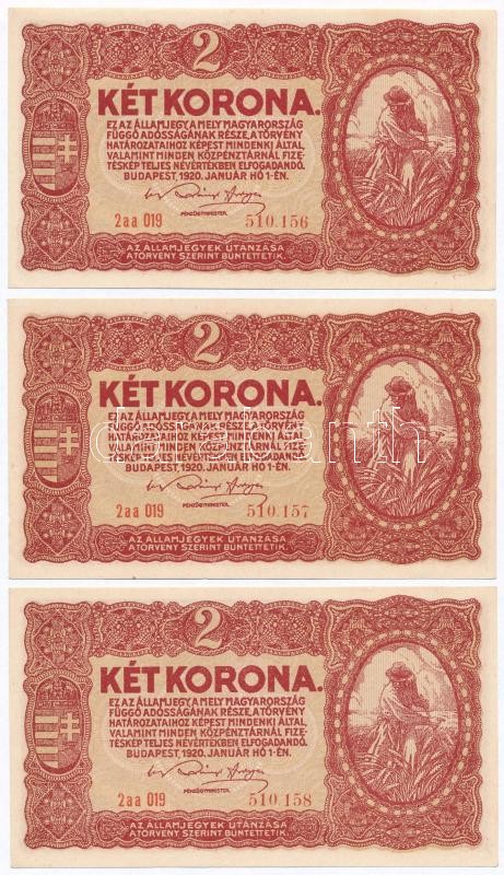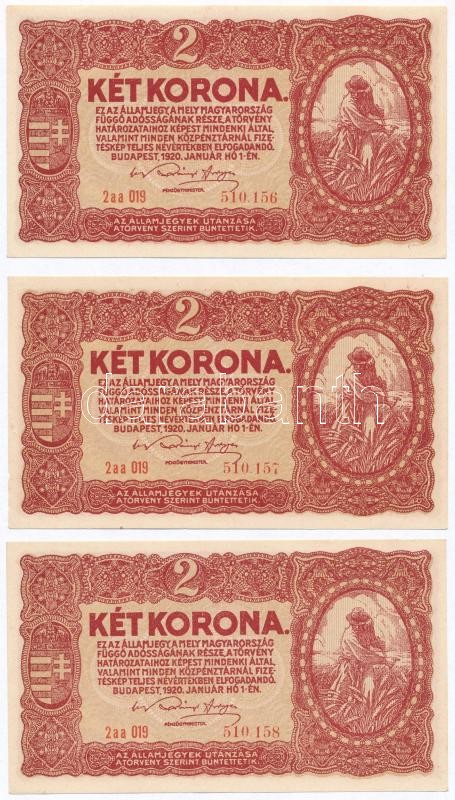 1920. 2K "2aa" (3x) sorszámkövetők T:I,I- https://www.darabanth.com/de/308-Fernauktion/308.0/Numismatik/Ungarische-Banknoten~300007/1920-2K-2aa-3x-sorszamkovetok-TI-I-~II1671008