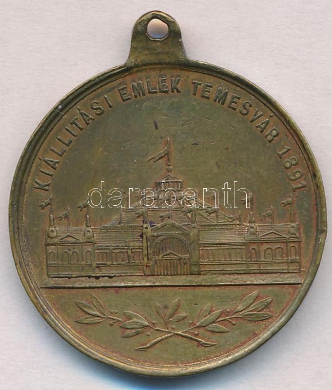 1891. Bellusi Baross Gábor M. Kir. Keresked. Minister, a Kiállítás Védnöke / Kiállítási Emlék Temesvár 1891" Cu emlékérem füllel (33mm) T:2