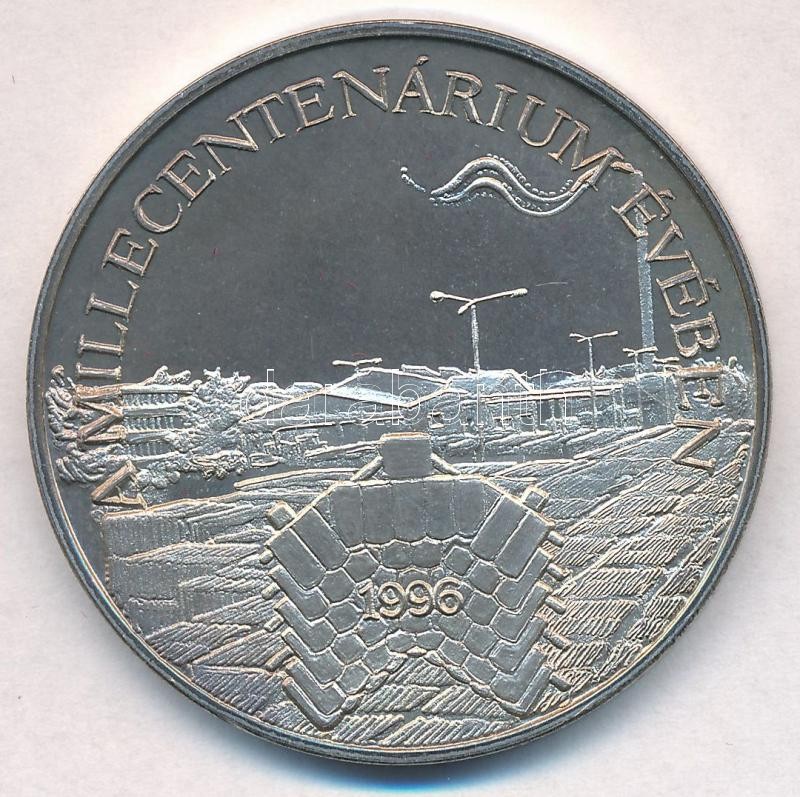 Bozó Gyula (1913-2004) 1996(?) "25 éves a Tatai Cserépipari Részvénytársaság / A millecentenárium évében" jelzett Ag emlékérem Bozó Gyula névjegyével ellátott tokban (36,26g/0.925/42,5mm) T:2(PP)