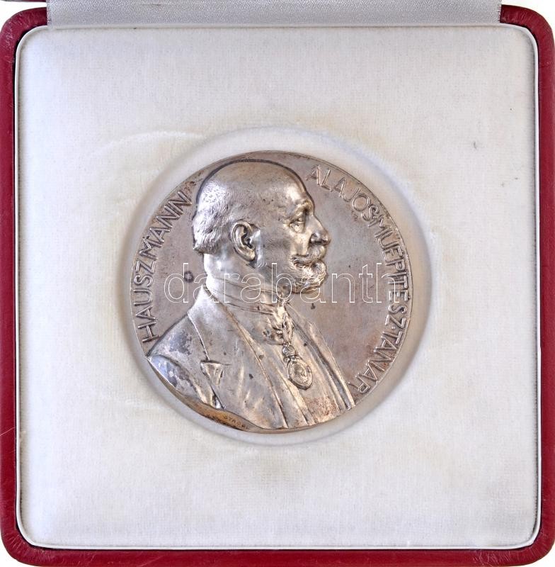 Strobl Alajos (1856-1926) 1905. "Hauszmann Alajos - műépítész, tanár" ezüstözött Br emlékérem dísztokban (79mm) T:2 ph., kopott ezüstözés 1905. "Hauszmann Alajos" silver plated Br commemorative medal in case. Sign: Alajos Strobl (79mm) C:XF edge error, worn silver plating HP-4911.