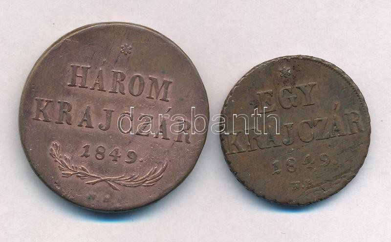 1848. 1kr Cu + 1849NB 3kr Cu T:2,2- https://www.darabanth.com/de/308-Fernauktion/308.0/Numismatik/Ungarische-Munzen-und-Munzen-mit-ungarischem-Munzzeichen~300008/1848-1kr-Cu-plus-1849NB-3kr-Cu-T2-2-~II1672160