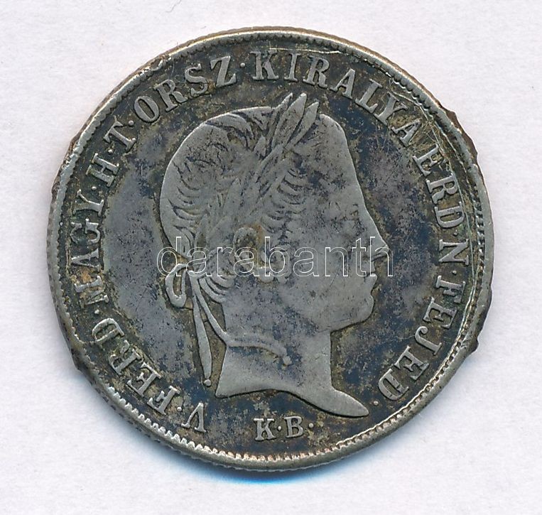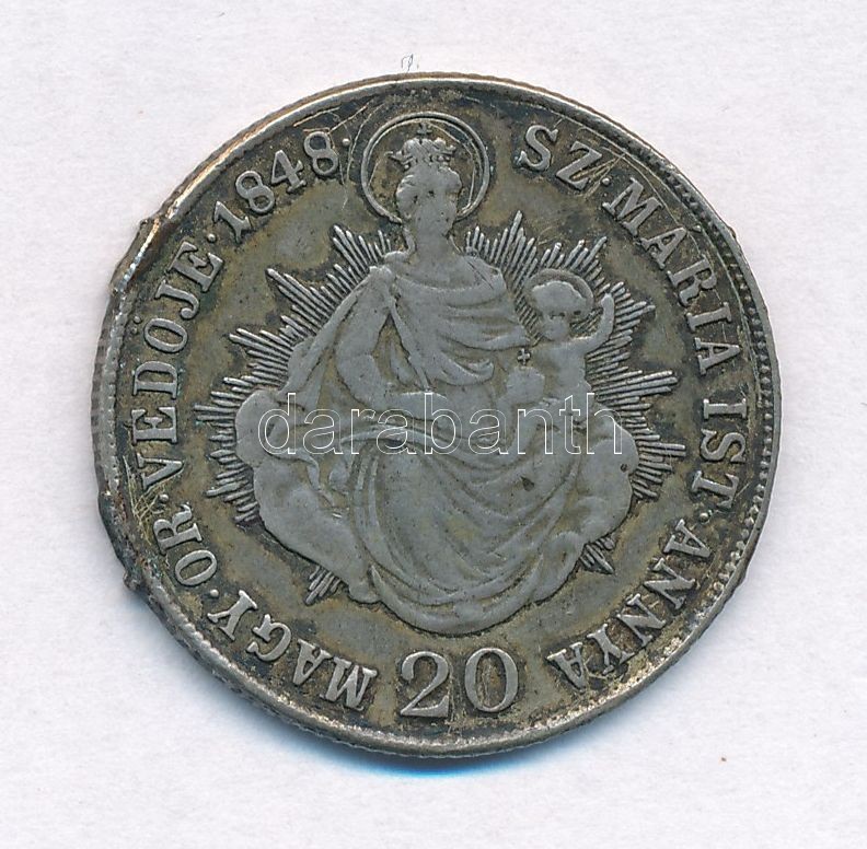 Adamo B5 https://www.darabanth.com/de/308-Fernauktion/308.0/Numismatik/Ungarische-Munzen-und-Munzen-mit-ungarischem-Munzzeichen~300008/1848KB-20kr-Ag-V-Ferdinand-T2-3-brossnyomok--Adamo-B5~II1677563