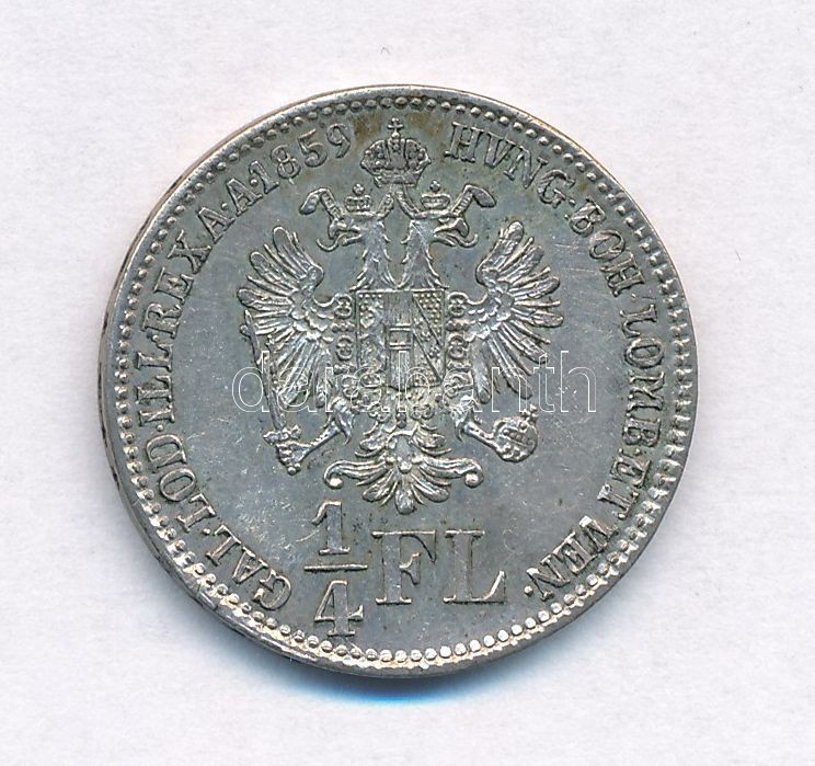 Hungary 1/4 Florin Ag &q... https://www.darabanth.com/de/308-Fernauktion/308.0/Numismatik/Ungarische-Munzen-und-Munzen-mit-ungarischem-Munzzeichen~300008/1859B-14Fl-Ag-Ferenc-Jozsef-T2--Hungary-14-Florin-Ag-Franz-Joseph-CXF--Adamo-M12~II1672067