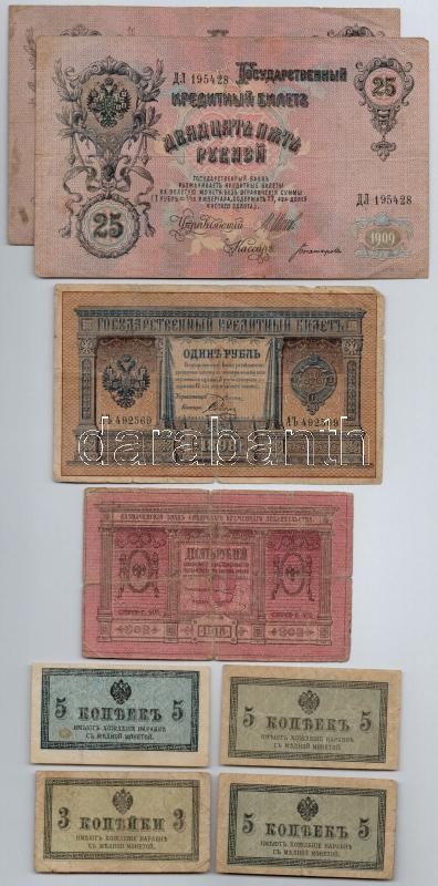 Russian Empire 1912... https://www.darabanth.com/de/308-Fernauktion/308.0/Numismatik/Weltweit-Banknoten~300012/Orosz-Birodalom-1912-1918-3k-25R-8x-TIII-III---Russian-Empire-1912-1918-3-Kopeks--25-Rubles-8~II1675509